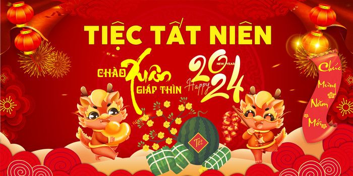 Mẫu phông tiệc tất niên đậm sắc xuân truyền thống