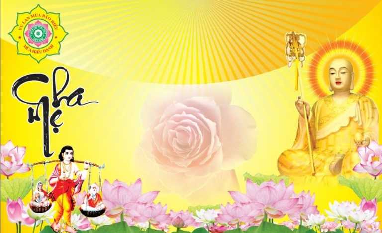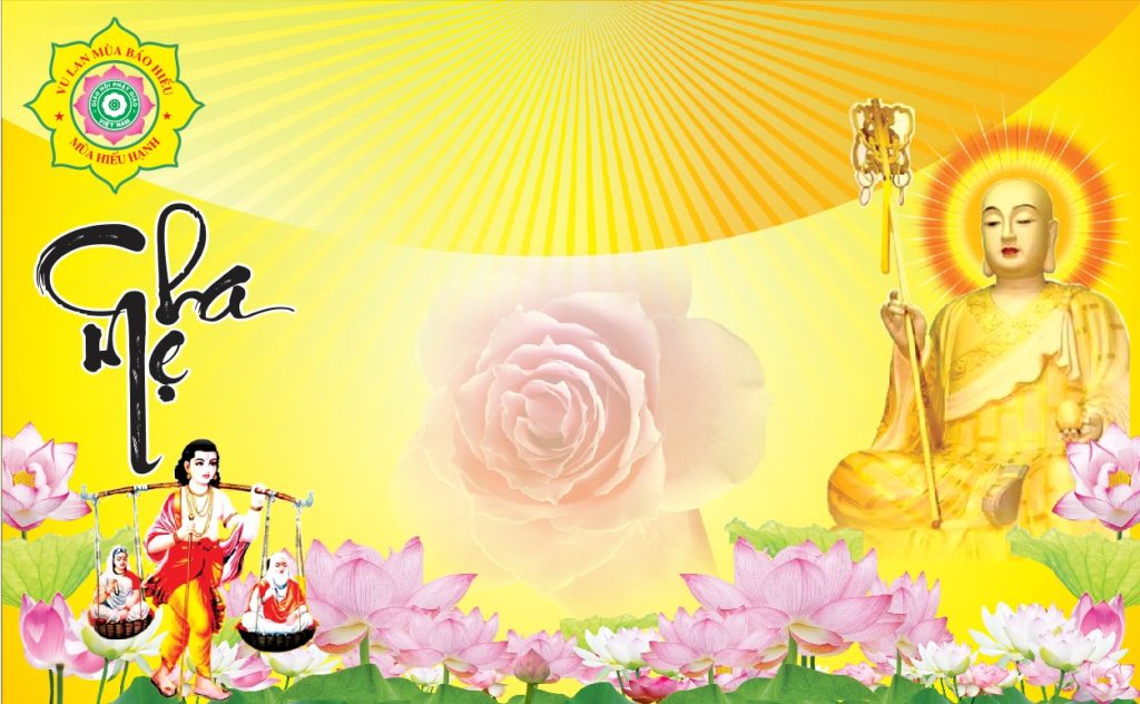 Phông nền lễ Vu Lan (hiếu đạo) có hình ảnh hoa hồng (tặng mẹ), nén nhang, chữ “Hiếu” viết thư pháp. Màu hồng, đỏ nhạt (hoa hồng), vàng (ánh sáng). Slogan về công đức cha mẹ, đạo hiếu. Hình Bồ Tát Địa Tạng (cứu độ) thường xuất hiện.