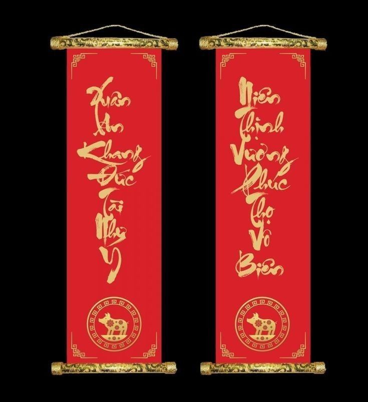Lưu ý: Khi sử dụng vector câu đối tết, bạn nên kết hợp với phông nền đỏ thắm và họa tiết hoa mai vàng để tạo nên tổng thể hài hòa, đậm chất văn hóa Tết Việt truyền thống.