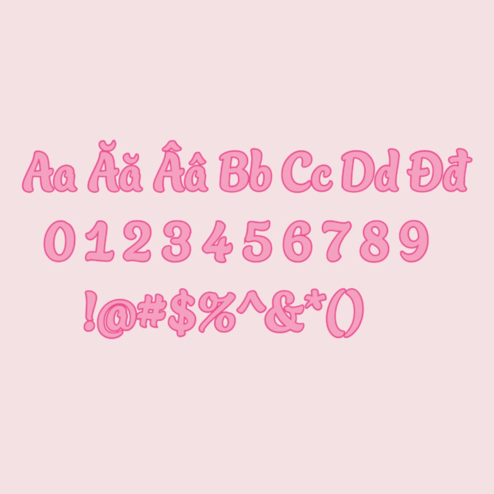 - Chỉ có Regular, không có weight phụ: Toàn bộ cá tính của font nằm ở dáng chữ và chi tiết nét không thể làm đậm hay nghiêng thêm.