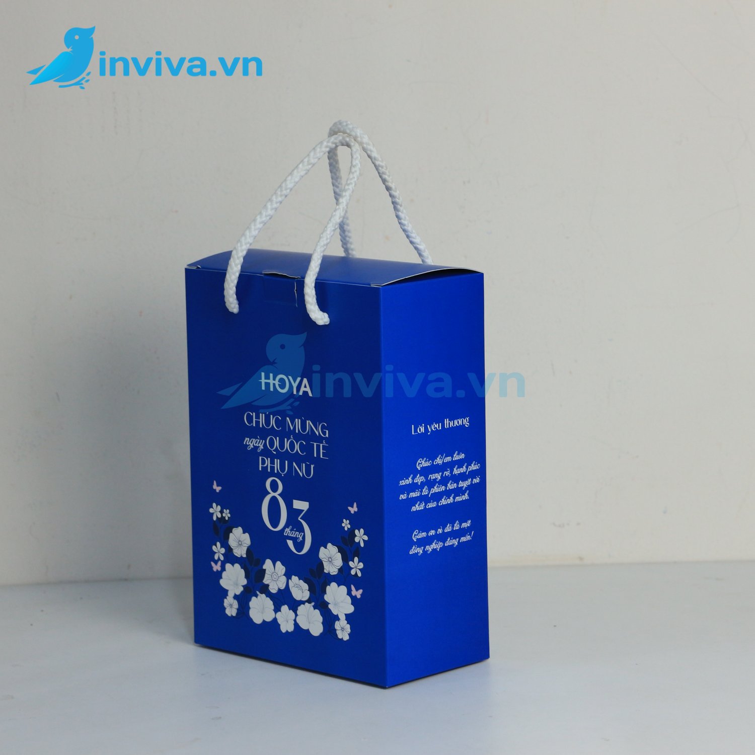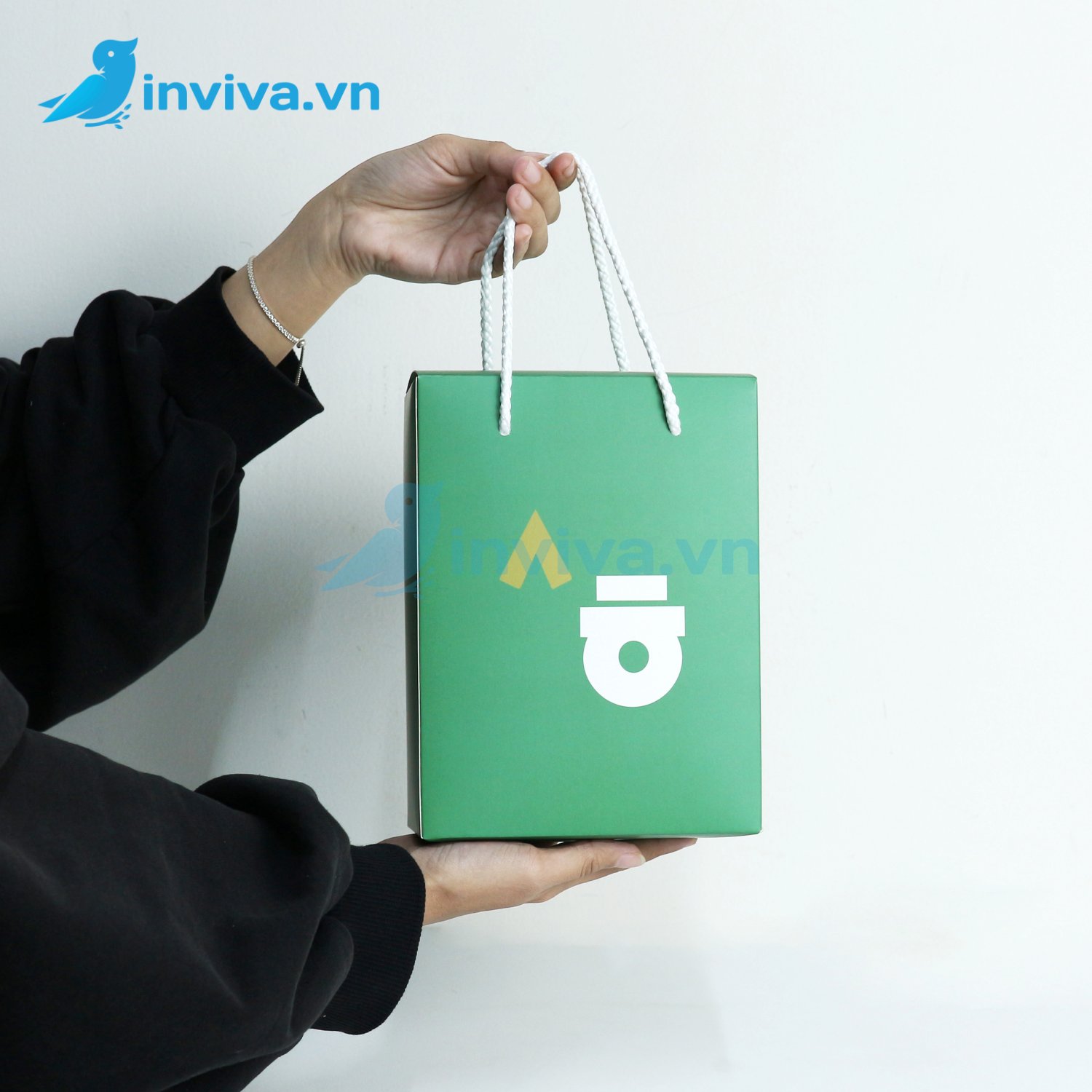 Mẫu hộp giấy có quai xách in logo thương hiệu Mẫu hộp giấy có quai xách in logo thương hiệu