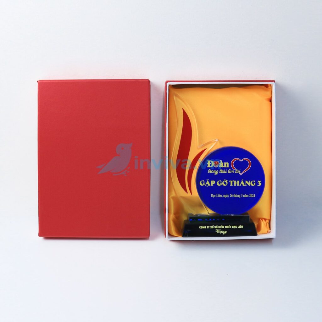 Ngoài ra, hộp đựng còn tăng tính thẩm mỹ, tạo ấn tượng sang trọng, chuyên nghiệp khi trao tặng, giúp quà tặng vinh danh trở nên trang trọng và ý nghĩa hơn trong mắt người nhận ở các sự kiện vinh danh, lễ tri ân, hội nghị. Nhiều doanh nghiệp, tổ chức lựa chọn in ấn logo lên hộp để quảng bá thương hiệu và lưu giữ dấu ấn lâu dài.