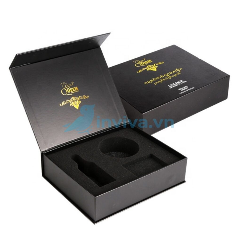 - Bên trong có thể bồi thêm mút xốp, vải nhung hoặc chia ngăn để bảo vệ sản phẩm tốt hơn.