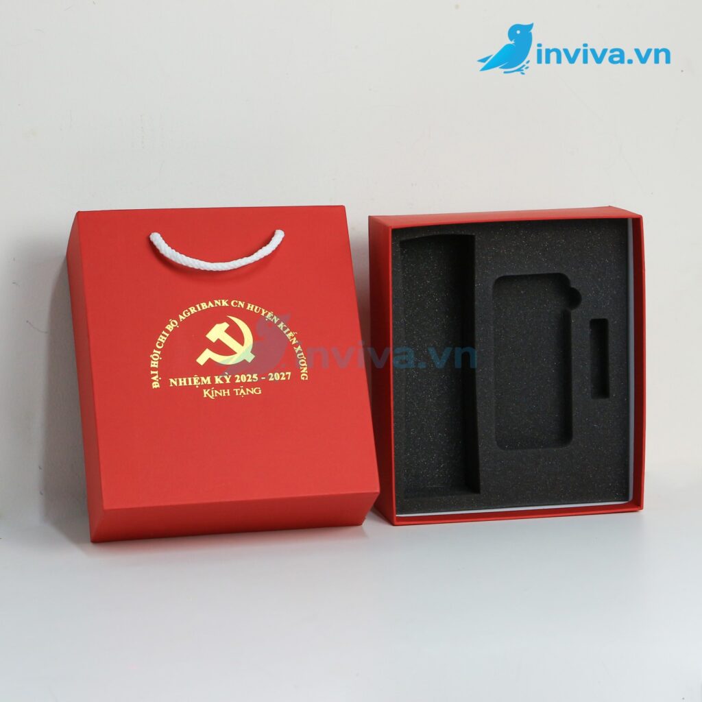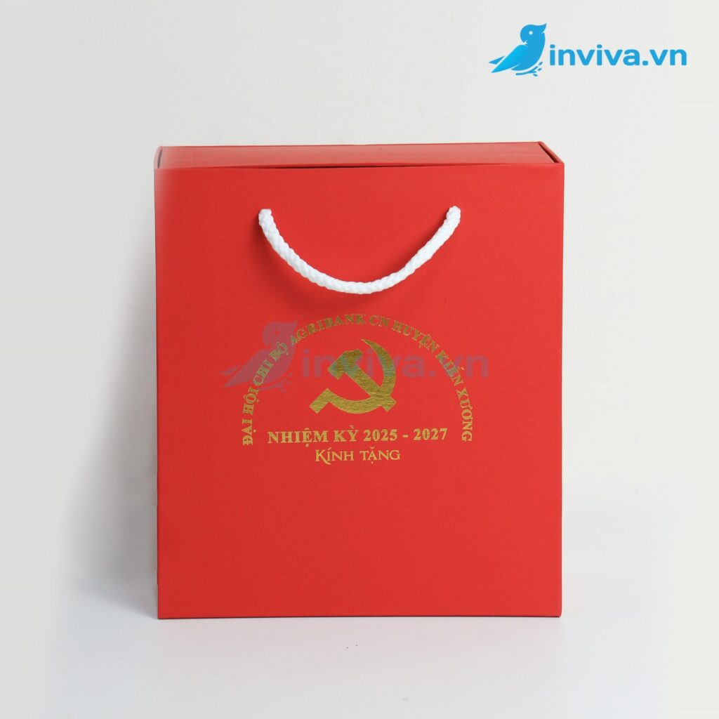 | Hộp có quai xách | Hộp kết hợp quai vải, ruy băng hoặc dây giấy. | Tiện lợi khi mang theo, thẩm mỹ cao, dễ tái sử dụng như túi quà. |