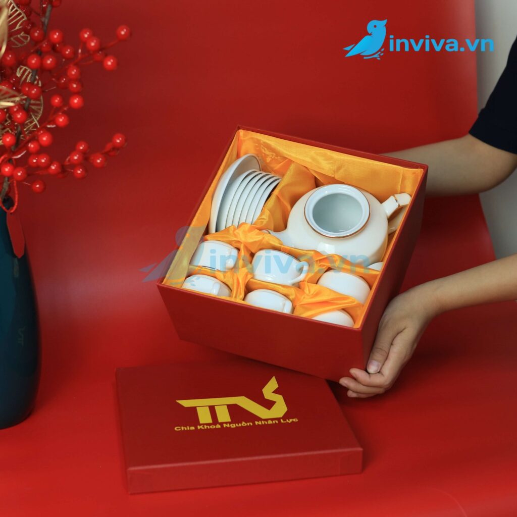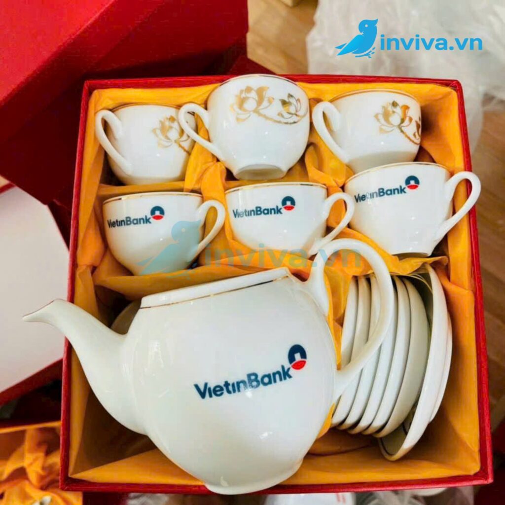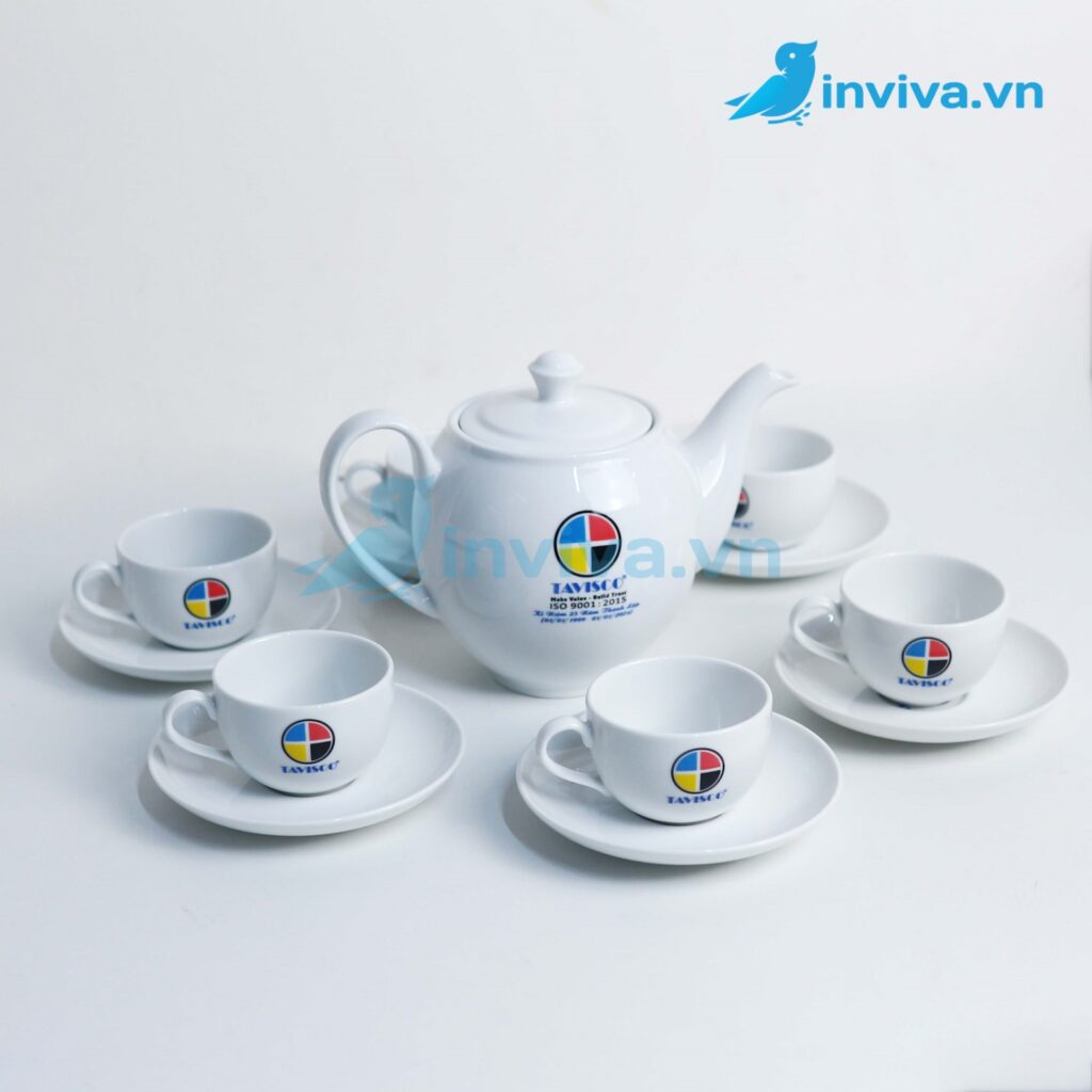 In Viva gợi ý: Nếu bạn cần quà tặng cho hội nghị, lễ tri ân hay dịp Tết thì có hãy cân nhắc đặt in logo trên ấm chén theo bộ số lượng lớn bởi chi phí sẽ tối ưu hơn rất nhiều nhưng đem đến hiệu quả quảng cáo thương hiệu.