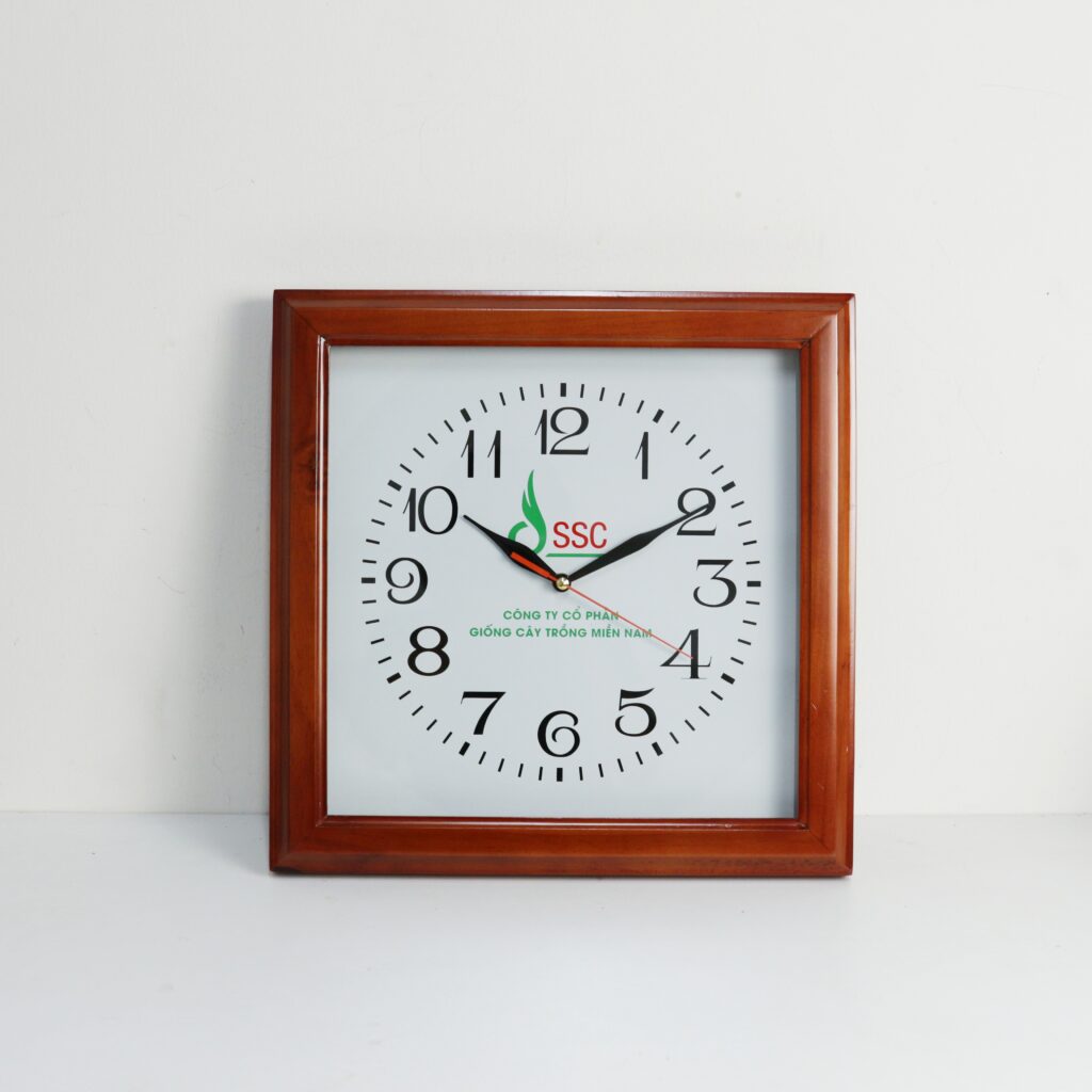 Xưởng In Viva chuyên in logo trên đồng hồ treo tường các loại từ đồng hồ tròn, vuông đến dạng đồng hồ si bóng theo yêu cầu khách hàng làm quà tặng đại hội, quà tặng khách hàng cao cấp. Chi phí đặt in đồng hồ treo tường chỉ từ 80.000đ/sản phẩm, thời gian sản xuất nhanh từ 3-5 ngày, tùy số lượng.