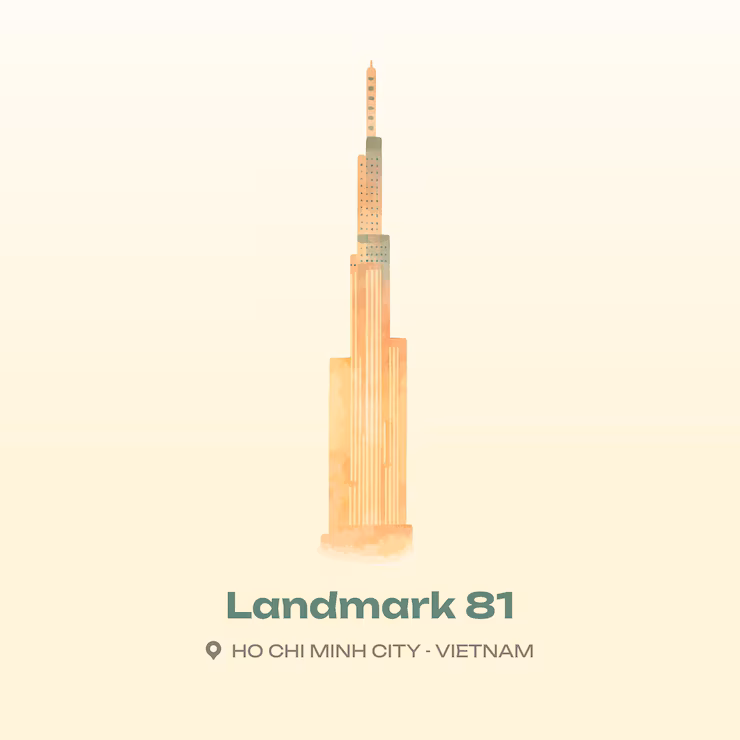 Biểu tượng Landmark 81 trong thiết kế thường được khai thác như một hình ảnh đại diện cho sự vươn lên, hiện đại và đẳng cấp đô thị. Với hình dáng mô phỏng ngọn tháp cao vươn thẳng lên bầu trời, biểu tượng này gợi cảm giác về sự phát triển không ngừng và khát vọng chinh phục những giới hạn mới.