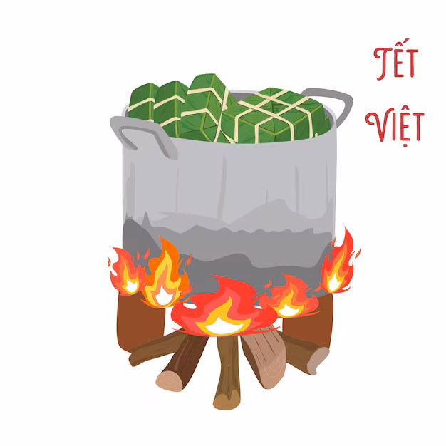 Hình ảnh nấu bánh chưng bên bếp lửa hồng là biểu tượng quen thuộc của ngày Tết Việt, gợi lên không khí sum vầy, ấm áp và sự gắn kết giữa các thành viên trong gia đình. Đây không chỉ là hoạt động truyền thống mà còn thể hiện lòng biết ơn tổ tiên và mong ước một năm mới đủ đầy, an khang.