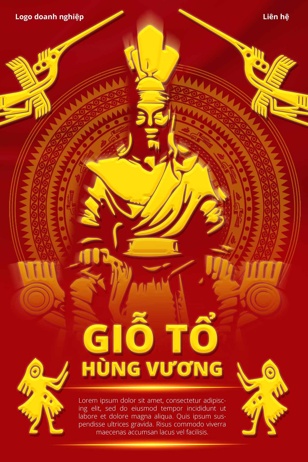 Mẫu thiết kế này thường sử dụng hình ảnh trung tâm là cổng Đền Hùng hoặc tượng Quốc Tổ giữa mây ngàn đại ngàn. Màu sắc chủ đạo là đỏ và vàng, kết hợp với các họa tiết trống đồng Đông Sơn, chim lạc. Đây là mẫu giỗ tổ hùng vương poster phù hợp để treo tại các hội trường, cơ quan nhà nước.