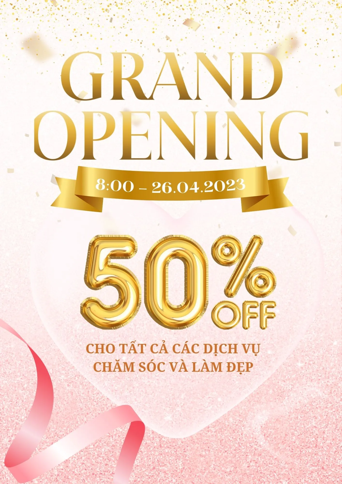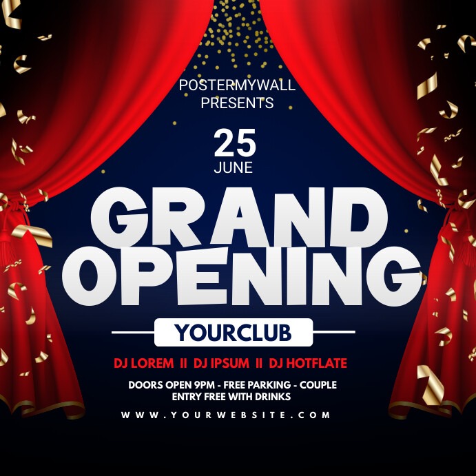 Vector (AI, EPS) Tự do thu phóng kích thước, phù hợp cho mọi loại biển bảng quảng cáo. Thiết kế băng rôn khai trương, standee đặt trước cửa hàng, backdrop lễ cắt băng.